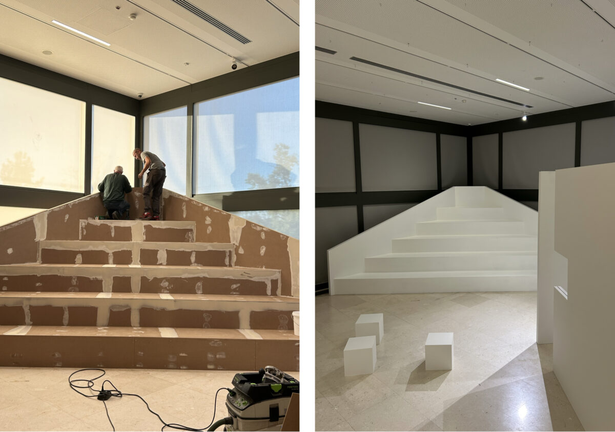 The exhibition design engages with the curatorial framework through a free interpretation of the “surrealist wall” concept as articulated by Marko Ristić. This approach transforms partition walls from purely functional exhibition components into autonomous spatial installations or megastructures. The design incorporates elements of excess, absurdity and play, converting articulated wall surfaces into sculptural and conceptual features that productively re-examine classical relationships between space and exhibits. Rather than serving as neutral backdrops, the walls assume an active role in the exhibition narrative, introducing unexpected spatial relationships and perceptual shifts that encourage visitor participation and exploration.