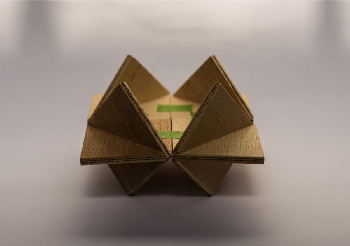 The principles of knitting are applied at all levels of the system’s design, including its construction technique. Both the individual elements and the entire system technically function on the principle of knitting – the joints between elements represent a carpentry-based interpretation of the theme, creating flexible or rigid versions of interlacing in various wood-based materials, while only eco-friendly materials were used in production.