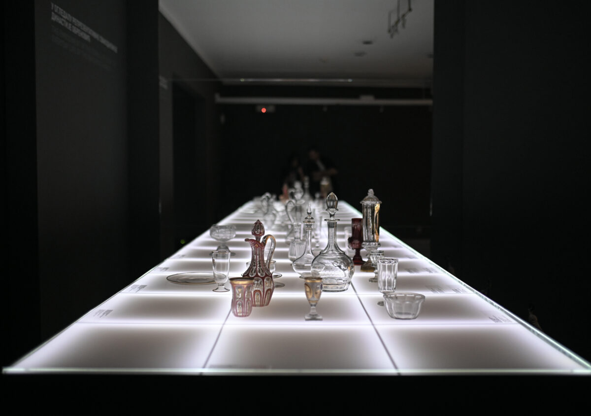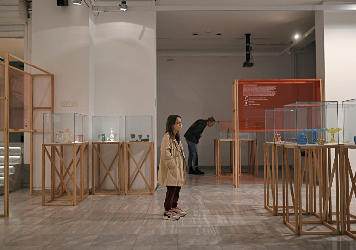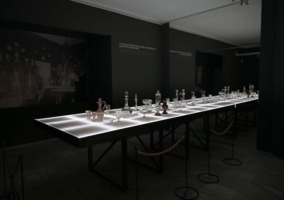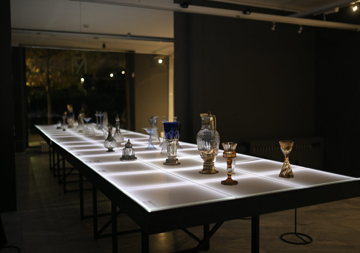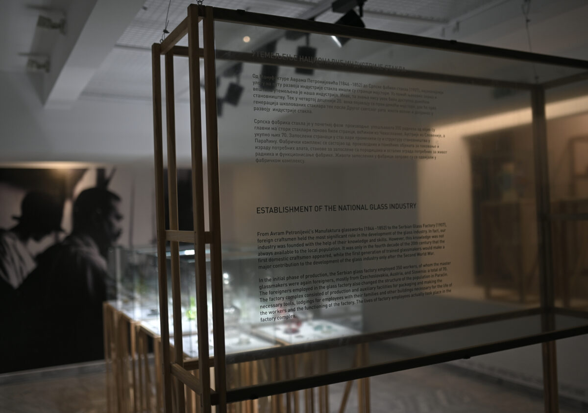 Ova reprezentativna izložba obuhvata period od jednog veka kroz koji se prati utemeljenje industrijalizacije stakla i uloge oblikovanog stakla kao važnog dela modernizacijskih procesa srpskog društva. Koristeći savremeni pristup u predstavljanju sadržaja, u težnji da se posetiocima približi fragilnost materijala, kao i značajan deo našeg nasleđa, akcenat postavke je na opozitima koji dodatno uvlače posetioca u istoriju nacionalne proizvodnje stakla, prateći njegov imaginarni stakleni put. Uloga oblikovanog stakla se prati kroz različite kulturne modele kroz koje se iščitavaju nacionalne, državne i lične težnje pojedinaca.